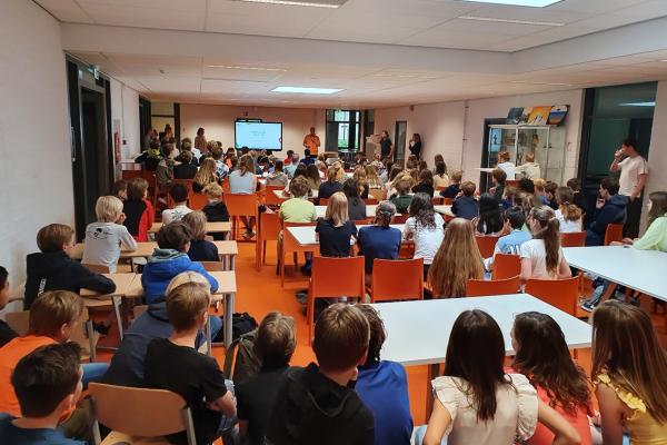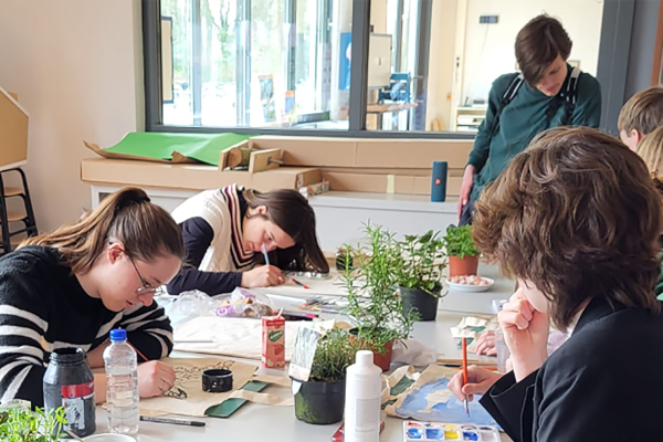 Leerlingen uit klas 5 en 6, die, samen met leerlingen van scholen uit Duitsland, Schotland en Italië, deelnemen aan het Erasmusproject “Reframing perspectives on Sustainability”, hebben op 28 maart hun medeleerlingen in het kader van dit project op sleeptouw genomen rond het thema duurzaamheid.