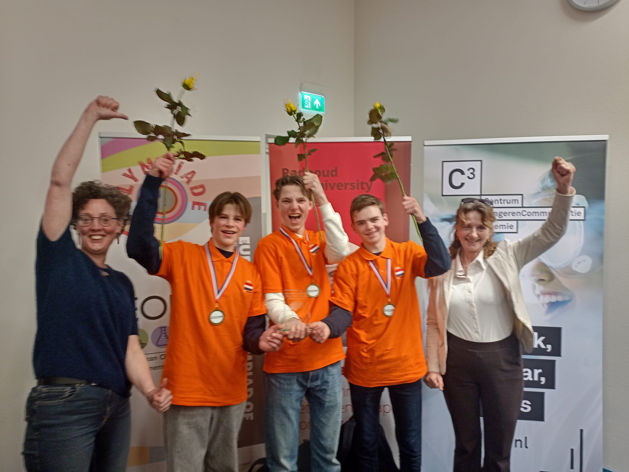 Wat een grote prestatie! Afgelopen weekend heeft het team van Lucas Duynisveld (4C), Pieter van Haselen (5A) en Sebas Benes (5A) een geweldige prestatie neergezet: zij wonnen de nationale finale van de European Olympiad in Experimental Sciences (EOES) aan de Radboud Universiteit in Nijmegen! Na twee intensieve dagen vol experimenten in biologie, natuurkunde en scheikunde behaalden zij met een indrukwekkende score van 8,7 de eerste plaats.