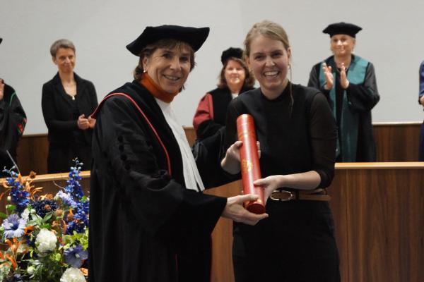 Dinsdag 17 december promoveerde Eline van Houtum (examenjaar 2014) met haar proefschrift: ‘Siglec immune checkpoint receptor signaling in the tumor microenvironment’. Eline studeerde moleculaire levenswetenschappen. De volgende dag, op woensdag 18 december verdedigde Joris Aarts (examenjaar 2011) zijn onderzoek. Joris deed promotieonderzoek binnen de cardiologieafdeling van het Radboudumc. Zijn onderzoek richtte zich op mensen die met klachten over pijn op de borst naar het ziekenhuis worden gebracht. Marieke Verhagen (examenjaar 2013) sloot donderdag 19 december deze bijzondere reeks af. Zij deed promotieonderzoek bij de afdeling Hematologie van het Radboudumc. Het onderzoek richtte zich op hemofilie, een erfelijke bloedstollingsstoornis die bijna alleen bij mannen voorkomt.