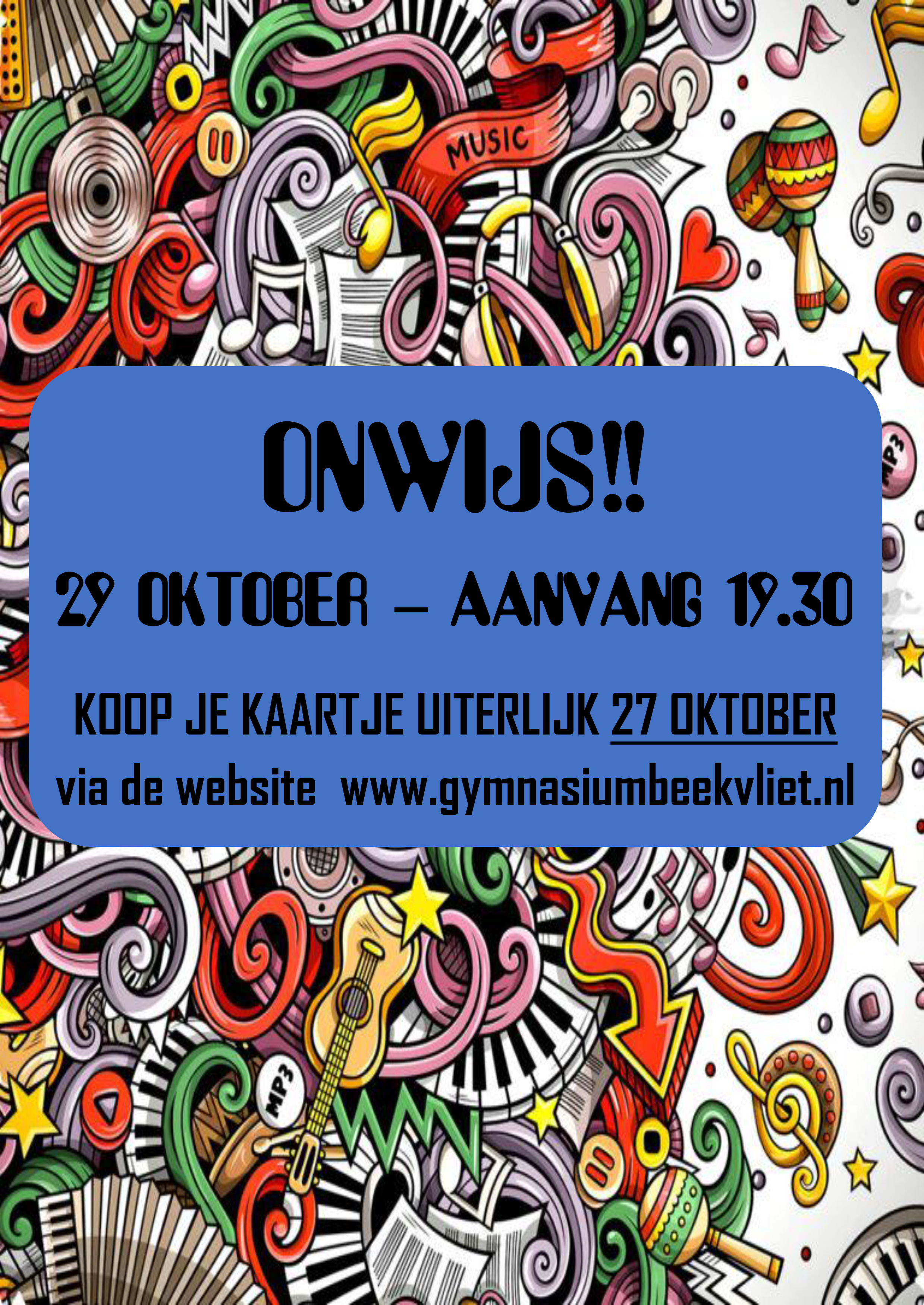 Op dinsdag 29 oktober wordt het podium opgebouwd voor het muzikale talent op Beekvliet. Leerlingen van jong tot oud laten zich van hun beste kant horen tijdens de muziekavond 'Onwijs!!'.
