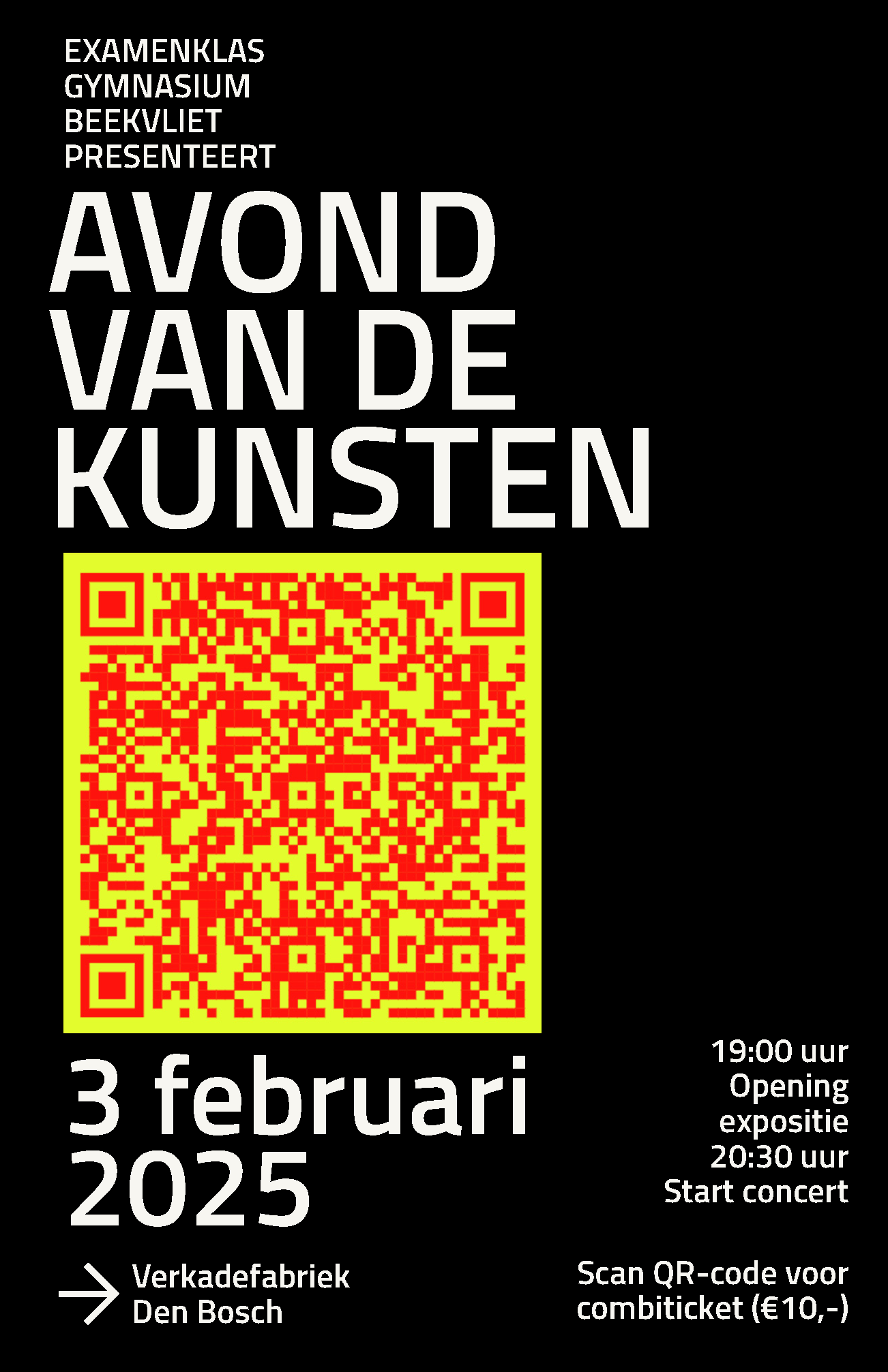 Onze kunst- en muziekleerlingen van klas 6 laten op de avond van 3 februari 2025 hun creatieve talenten zien en horen. De beeldende-kunstleerlingen hebben het afgelopen jaar gewerkt aan indrukwekkende meesterwerken die tijdens een prachtige expositie te bewonderen zullen zijn. Na de expositie presenteren de muziekleerlingen een afwisselend concert met stukken die zij zelf hebben uitgekozen en met trots aan jullie willen laten horen.