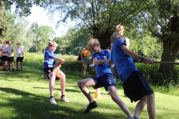 Na de opening door mevrouw Faassen ging de zonnige sportdag, die door klas 4 georganiseerd was, van start! Alle groepjes verspreidden zich over de verschillende onderdelen. Op het basketbalveld waren de teams zeer fanatiek, maar ook bij de wedstrijden van het touwtrekken deden de leerlingen enorm hun best om te winnen. Verder waren er diverse atletiekonderdelen waar de onderbouwklassen aan mee konden doen en werd er binnen nog hard gevolleybald. Bovendien werden er heerlijke hamburgers bereid door vierdeklassers voor tijdens de pauzes. Het was een zeer geslaagde sportieve dag waar iedereen van heeft genoten.